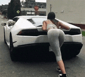 推着跑车走的女人,这是车没油了吗