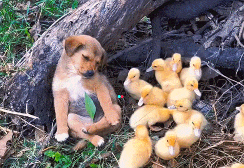 让狗狗好好看着鸭子,竟然在这里打磕睡
