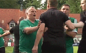 比赛场上的讹人现场,随手一推变成了掐脖子