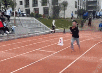 体育老师总会遇到一些顽皮的学生,用力过猛冲过头去