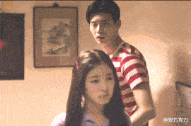 男生假装看旁边,然后偷偷亲一下女生的脸庞
