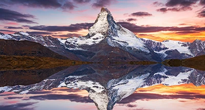 圣洁的雪山清晰的倒映在水里,像照镜子一样