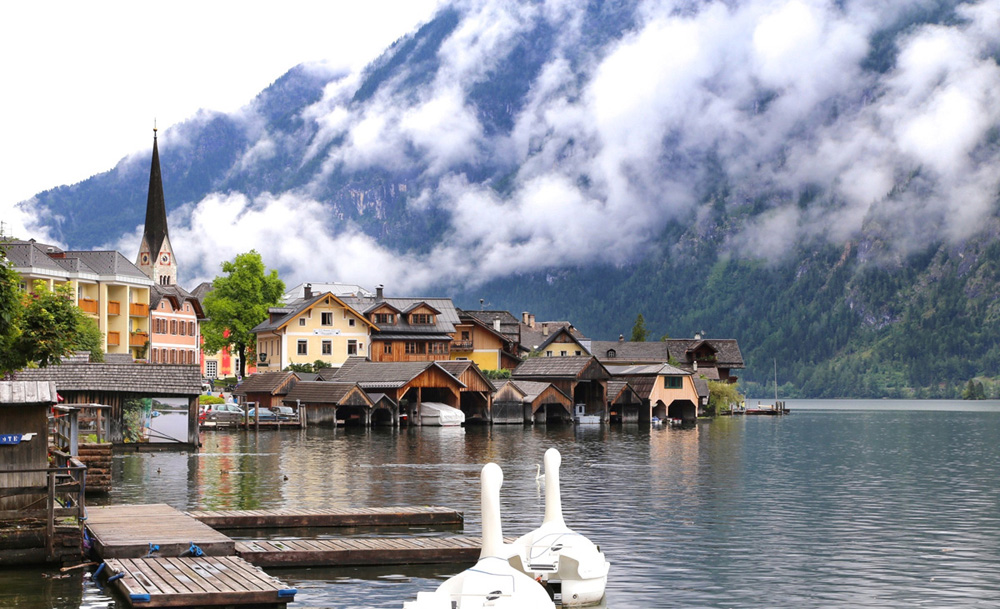 风光无限美好的湖边小镇