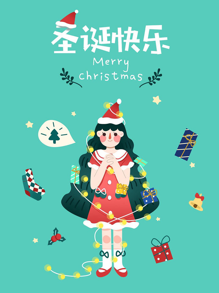卡通小姐姐给你送圣诞祝福了