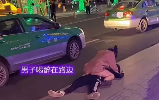 男子喝醉倒在路边,女友骑在身上也叫不醒