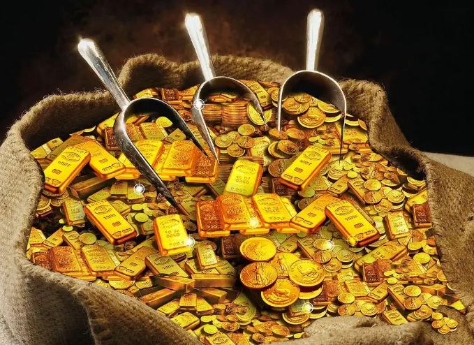 价值不少钱的金条和金币