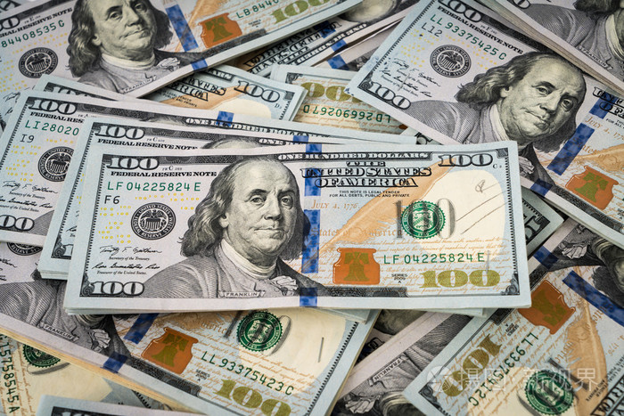 一堆面值百元的美元