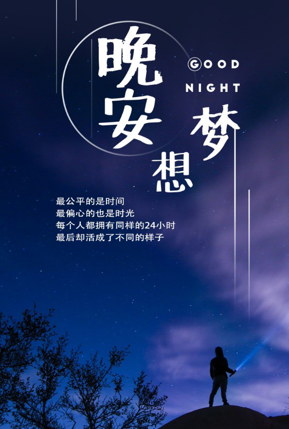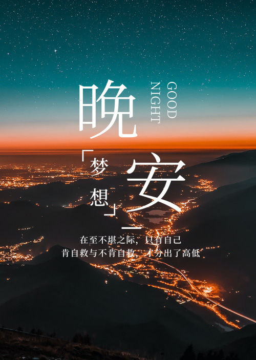 正能量晚安图-夜幕降临,梦想不灭