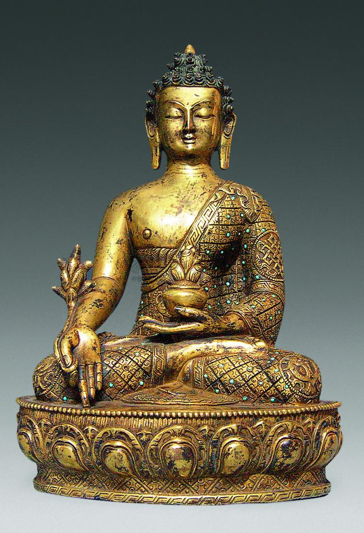 铜镏金镶绿松石药师佛像