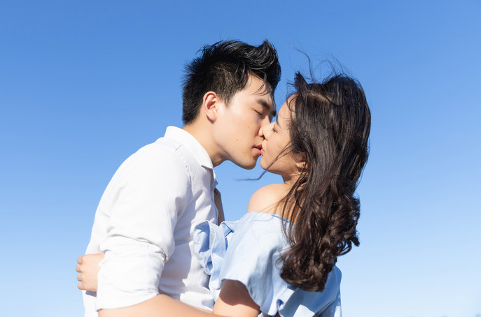 浪漫而深情的男女拥吻照片