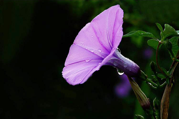 长得很有特色的紫色牵牛花,真的像喇叭一样
