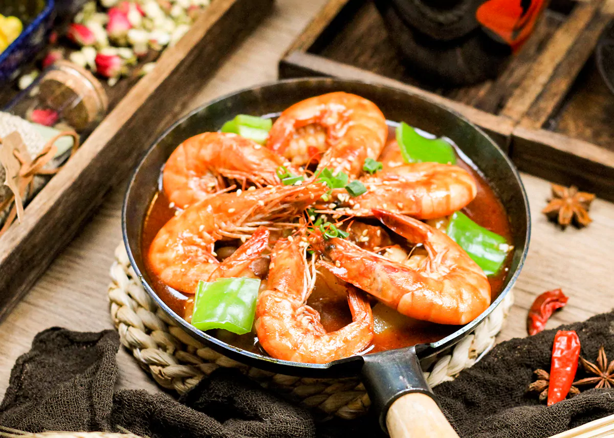 小铁锅大虾高清摄影图片