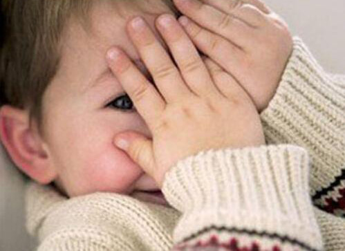 调皮小女孩羞涩的蒙住眼睛