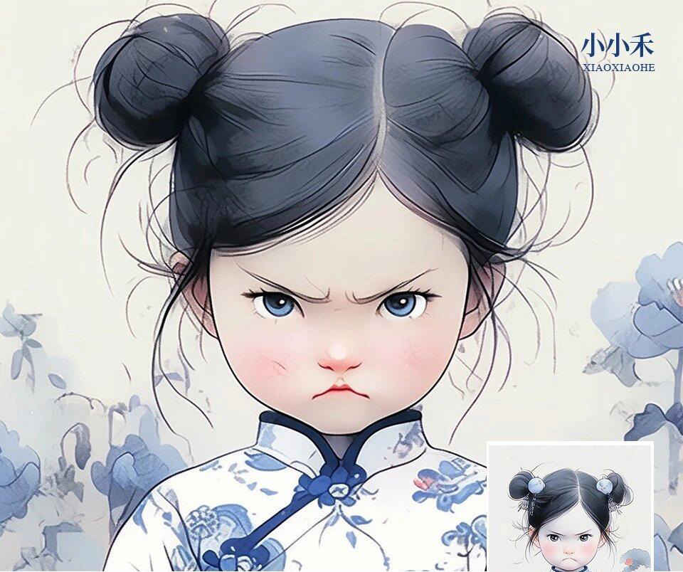 生气皱眉头的卡通小女孩